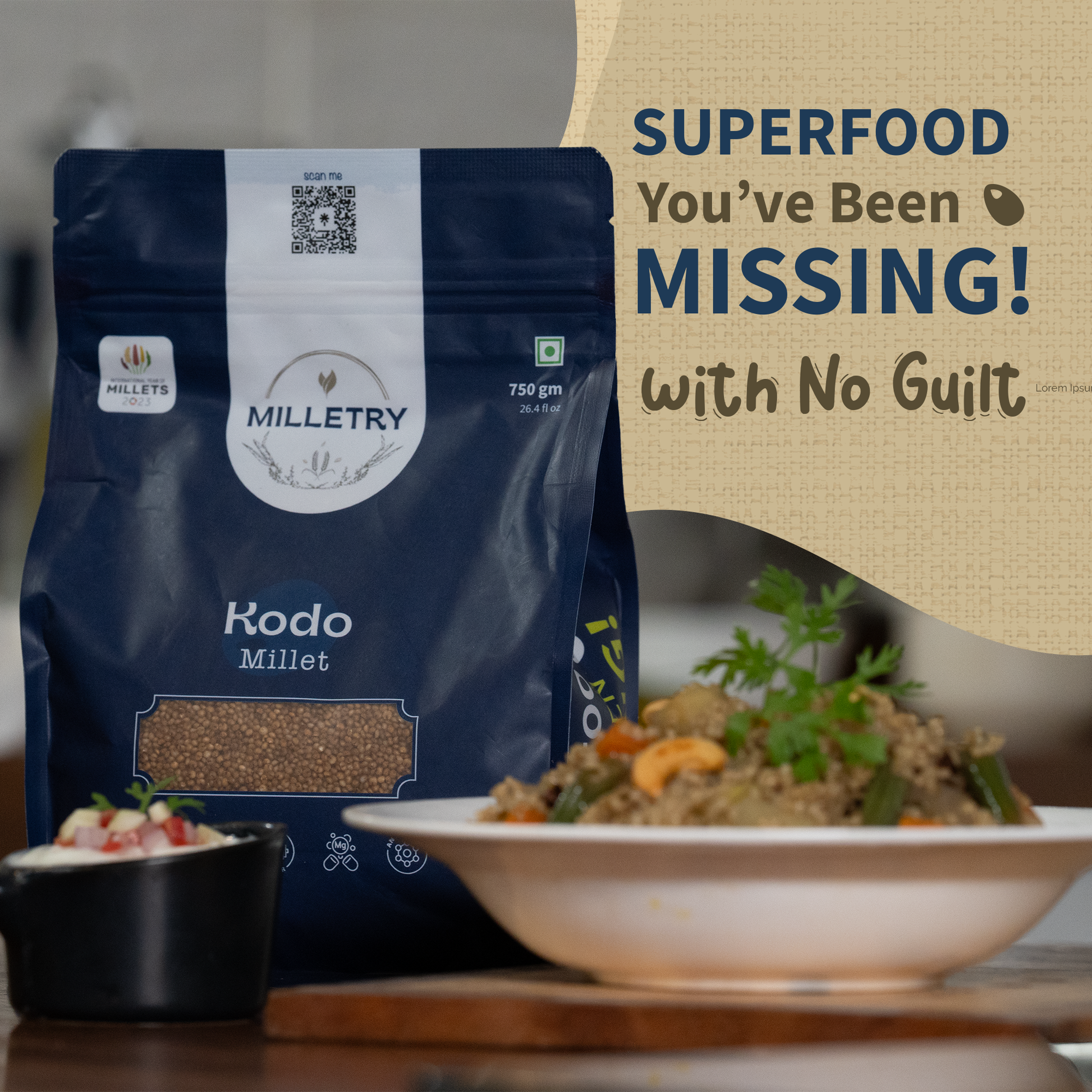 Milletry Kodo Millet High-Protein, Guilt-Free, Digestive Aid, Low-Glycemic, Versatile.